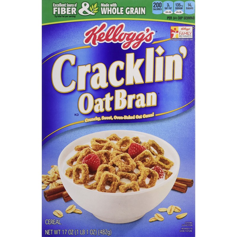 - Pack of three, 17-ounce boxes of Kellogg's Cracklin' Oat Bran Cereal
