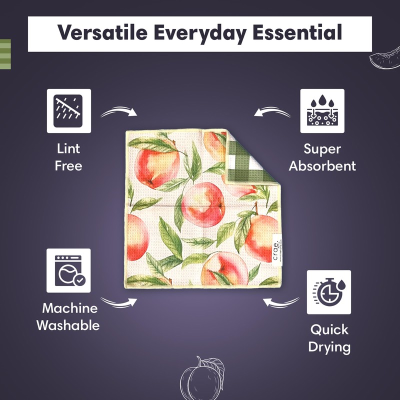 crae. Reversible Microfiber Washcloths 12x12 – Super Absorbent, Quick Drying Waffle Weave – Lint-Free, Scratch-Free Cleaning Cloths for Kitchen, Home, Cars & Windows (Peaches & Cream- Green/Multi)
