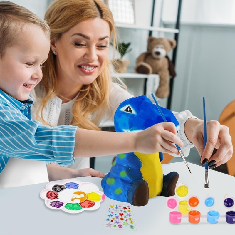 - Dinosaur lamp painting set: the craft kit contains a dinosaur lamp, 12 paint pots, 2 brushes, 1 palette, 1 apron and 1 sticker, and is suitable for children aged 4 and up.