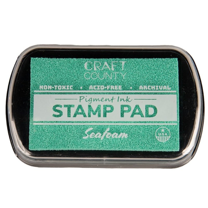 Craft County Pigment Ink Stamp Pad – Refillable Ink Pad in 15+ Colors – Raised Edges for Larger Stamps – Seafoam