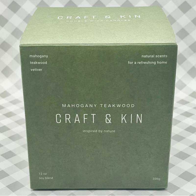 CRAFT & KIN Mahogany Teakwood 2-Wick Scented Candle 12oz ••NEW IN BOX••