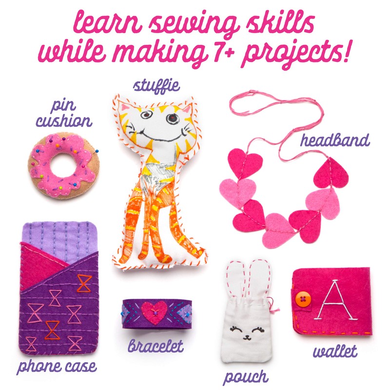 - AGES 7+ WILL LOVE THE EASY-TO-FOLLOW INSTRUCTIONS: Kit includes a handy full-color instruction booklet they’ll use for these projects–and over and over again for future sewing projects.