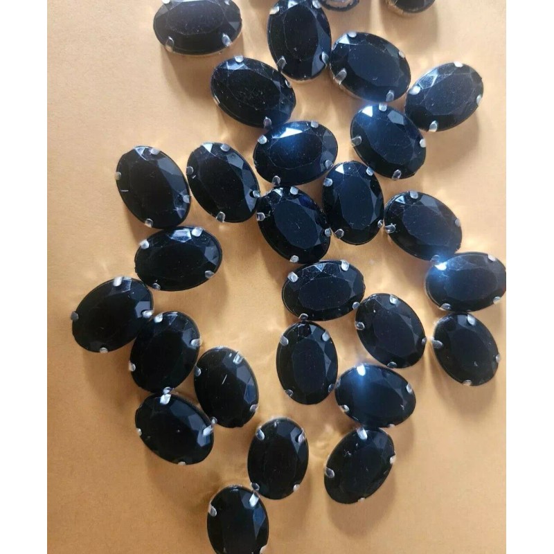 CraftbuddyUS 30pcs 13x18mm BLACK Acrylic Sew on Faceted OVAL Crystal Montees