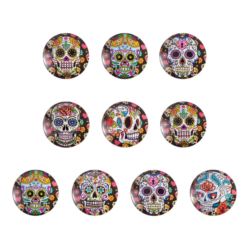 Craftdady 10pcs 25mm Assorted Skull Patterns Glass Cabochons Flatback Half Round Dome Cabs for Jewelry Craft Making