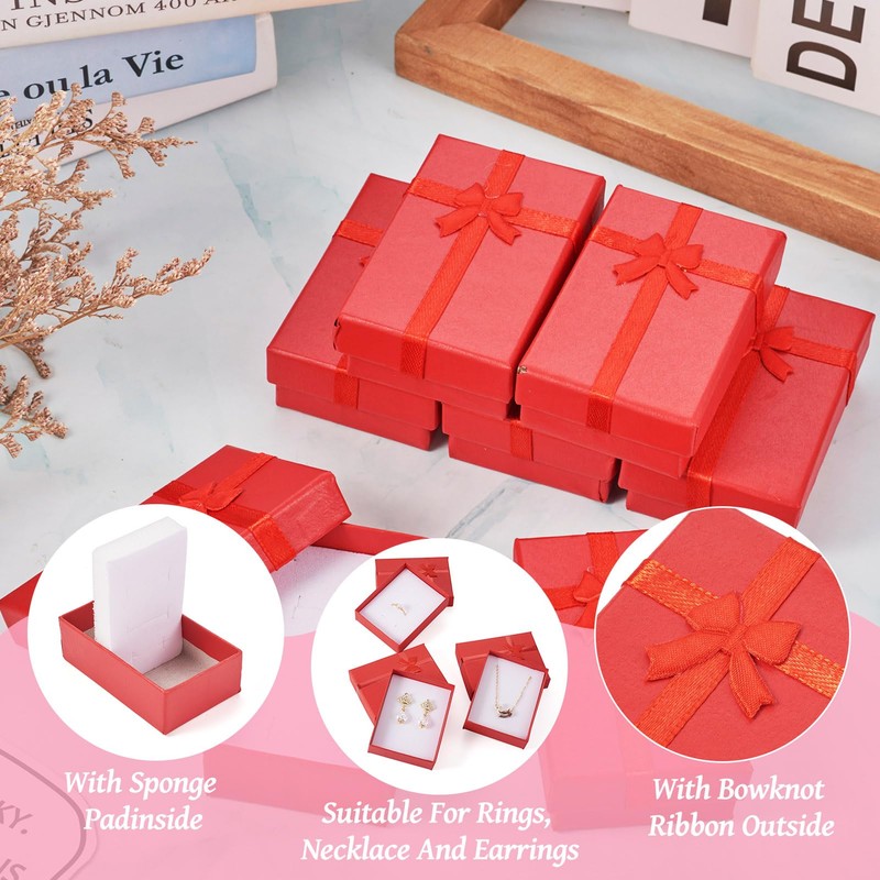 Craftdady 12pcs Red Jewelry Boxes Small Necklace Box Cardboard Jewelry Gift Boxes With Lids Bowknot Ring Earring Boxes for Women Valentines Day Jewelry Gift Packaing Display Organizer