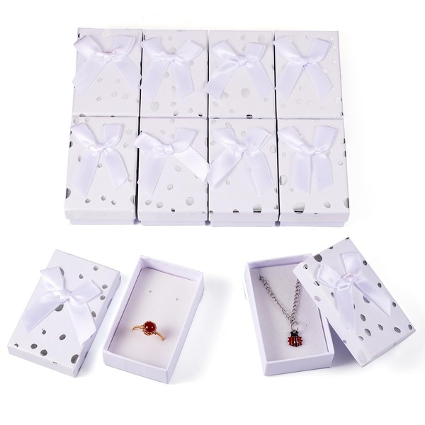 Craftdady White Rectangle Cardboard Jewelry Boxes 12 Pack Polka Dot Pattern Decorative Present Boxes Jewelry Storage Case for Necklace Pendant Earring Bracelet Jewelry Display 3.19 x 1.97 Inch