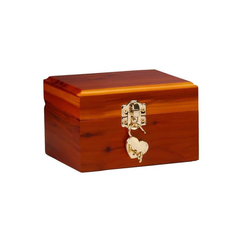 - Secure Closure: Features a brass latch and a heart shaped lock to securely close the urn and preserve the contents.