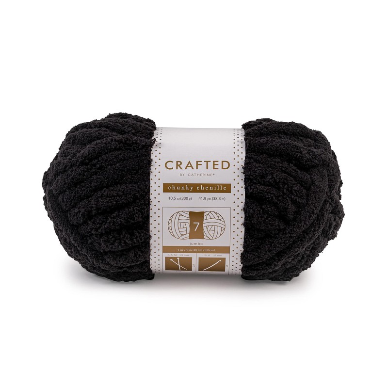 Crafted By Catherine Chunky Chenille Yarn - 2 Pack (41 Yards Each Skein), Black, Gauge 7 Jumbo