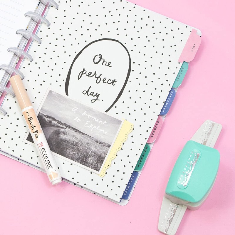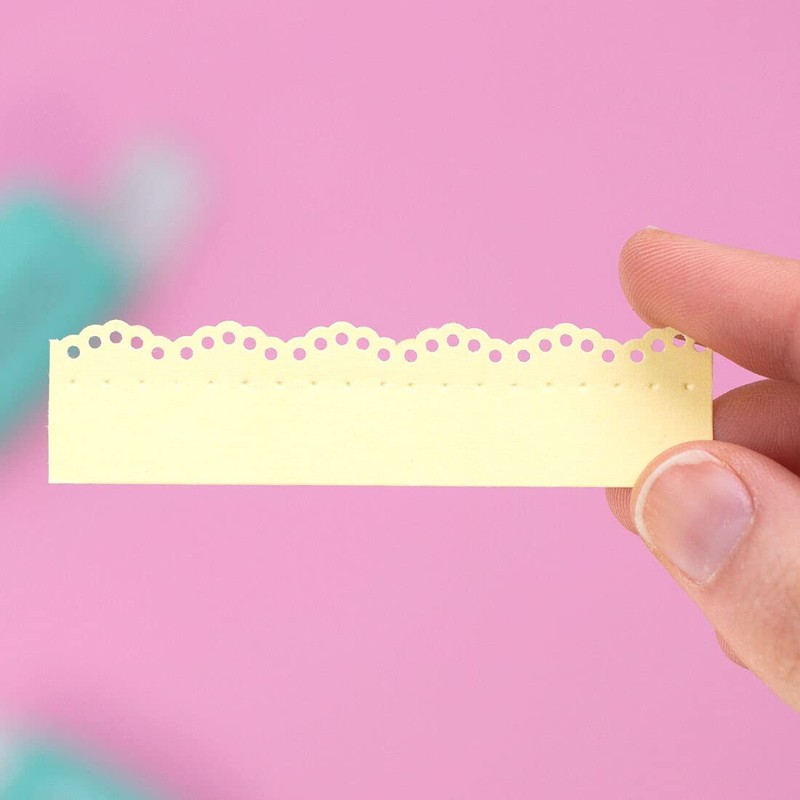 - Description: Lever punch for doily-shaped edges, for paper and cardboard, in cream and turquoise colour. You can put it on the table or on a flat surface for easier use. Such small details really change the look of your creations.