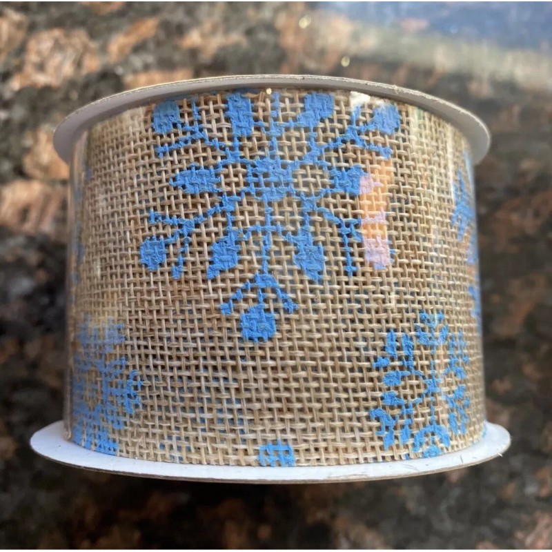 Crafter’s SQUARE 9 Ft Holiday Christmas House Blue Snowflake Burlap Ribbon, 2”x 108”, 3 Yards-NEW
