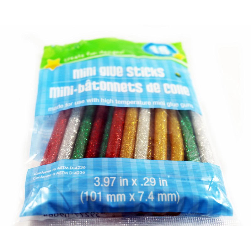 Crafters Square Mini Glue Sticks - Glitter - Red, Green, Gold, Silver - 15 sticks in package