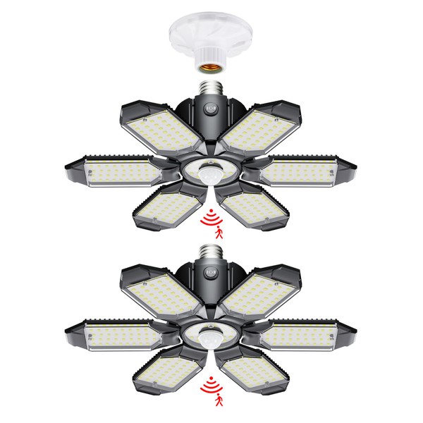 - 💡【Easy to Install】-- Motion sensor lights indoor with standard E26 screw lamp head, no complex installation procedures. Simply screw the garage light motion activated lamp head into the lamp holder , you can finish the installation within 15 seconds