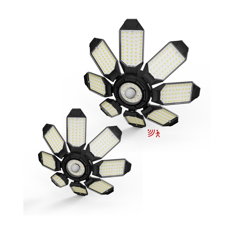 - 30000 LM Bright & Up to 300ft² Illumination : Led garage light built-in 375pcs energy-saving LED chips and with 8 deformable panels , the motion sensor garage light indoor provides a total output of 300W and a brightness of 30000 lumens at a daylight of 5000K. you only It delivers the best indoor lighting experience;