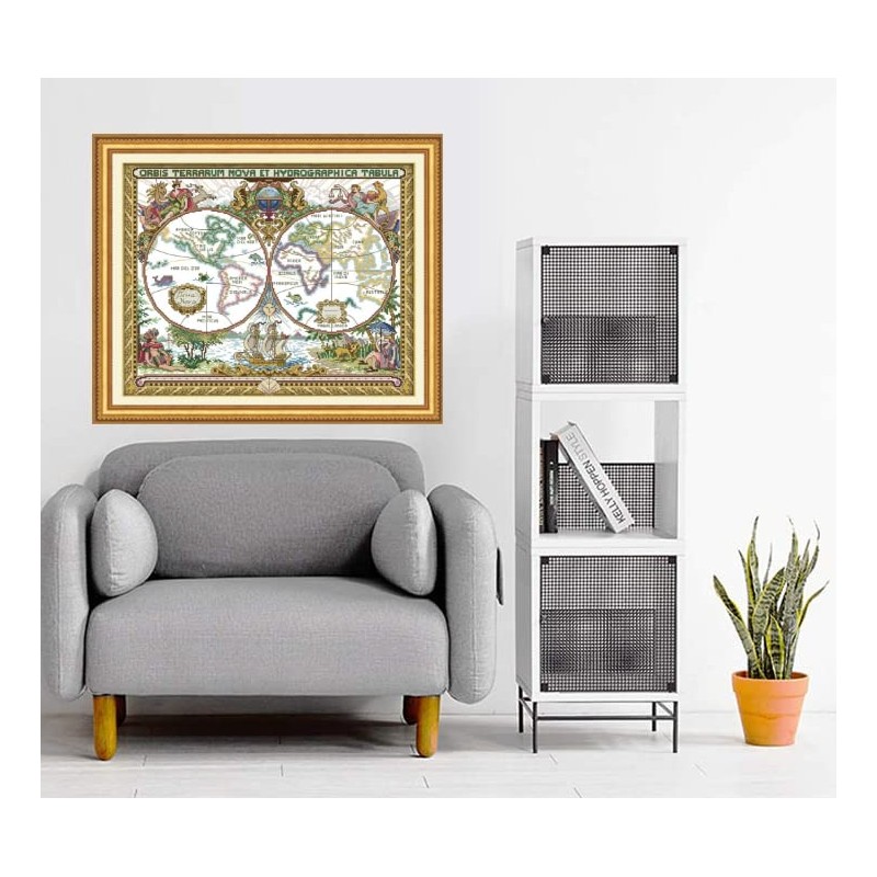 CRAFTiDA Cross Stitch Kits for Adults Pre-Printed Stamped Embroidery Kit 14CT 51x42cm DIY Cross Stitch Craft Kit (Old World Map)