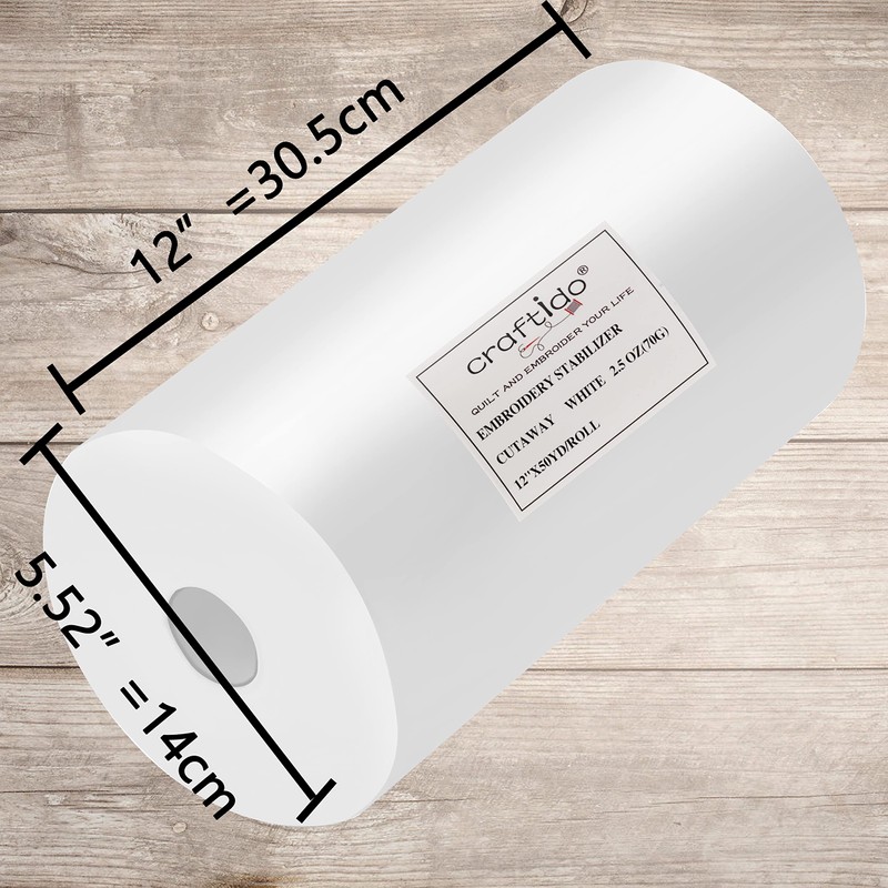 Craftido Cut Away Embroidery Stabilizer Backing 12" x 50 Yd/roll Compatible with Most Hoops 2.5oz Medium Weight for Machine Embroidery and Hand Sewing