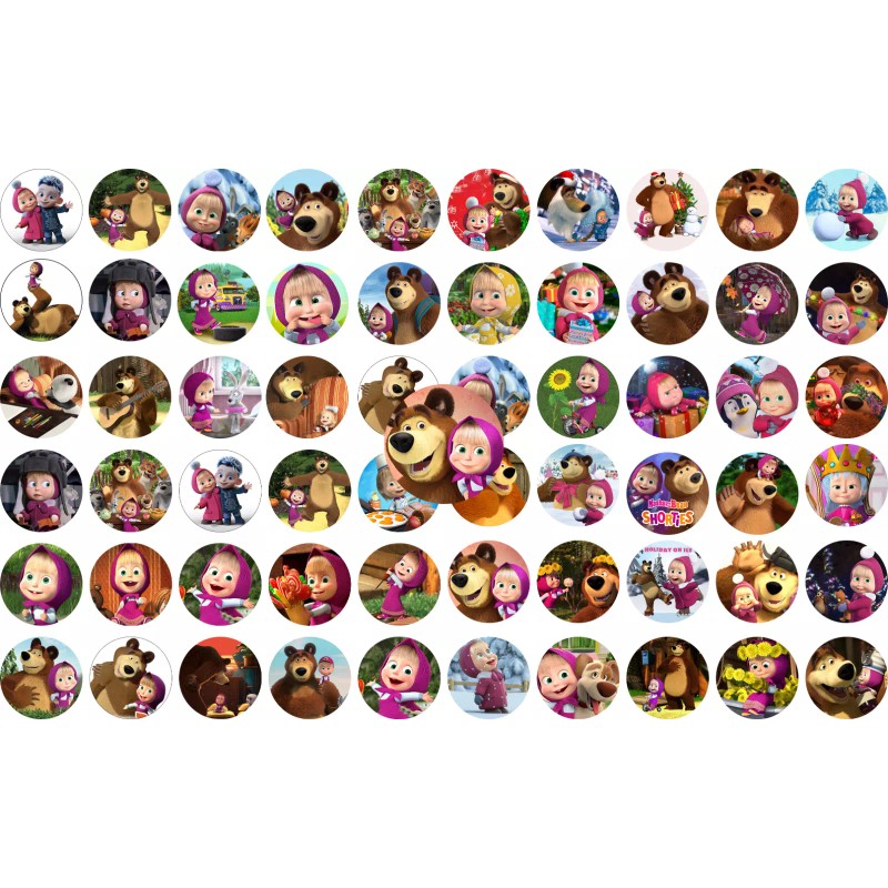 60 Precut 1" MASHA AND THE BEAR Bottle cap Images set 1!