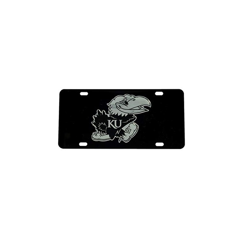 KU Kansas Black Jayhawk Mirrored License Plate Tag
