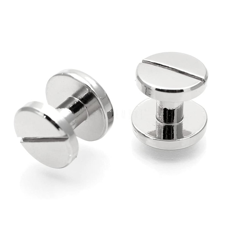 CRAFTMEMORE 11mm Chicago Screw Rivets Flat Cap Screw Posts Stud for Bags Belts Leather Strap 6 Pack (Silver)