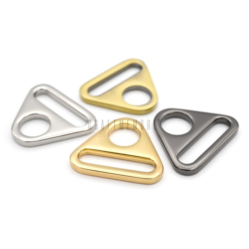 • Metal triangle rings adjusters for purse making, landyard, keychain, ribbon, backpacks, handbag, luggage, belts, diy craft projects, etc.