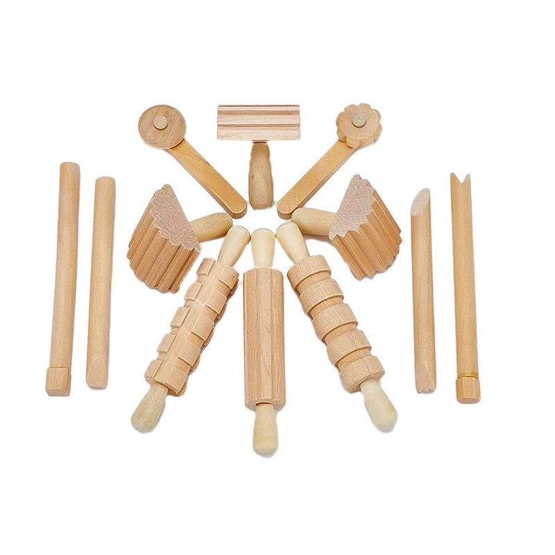 Craftplay Wooden dough/clay tools - Includes 12 tools for cutting, stamping and rolling clay & dough!