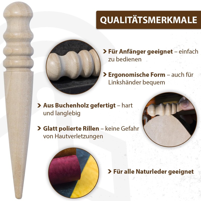 CRAFTPOINT 5 x Leather Edge Slicker - 14 cm Wood Burnisher with 4 Grooves, Edge Polisher for Leather, Wood Slicker for Leatherworking, Saddle Tool, DIY Leather Tool Set