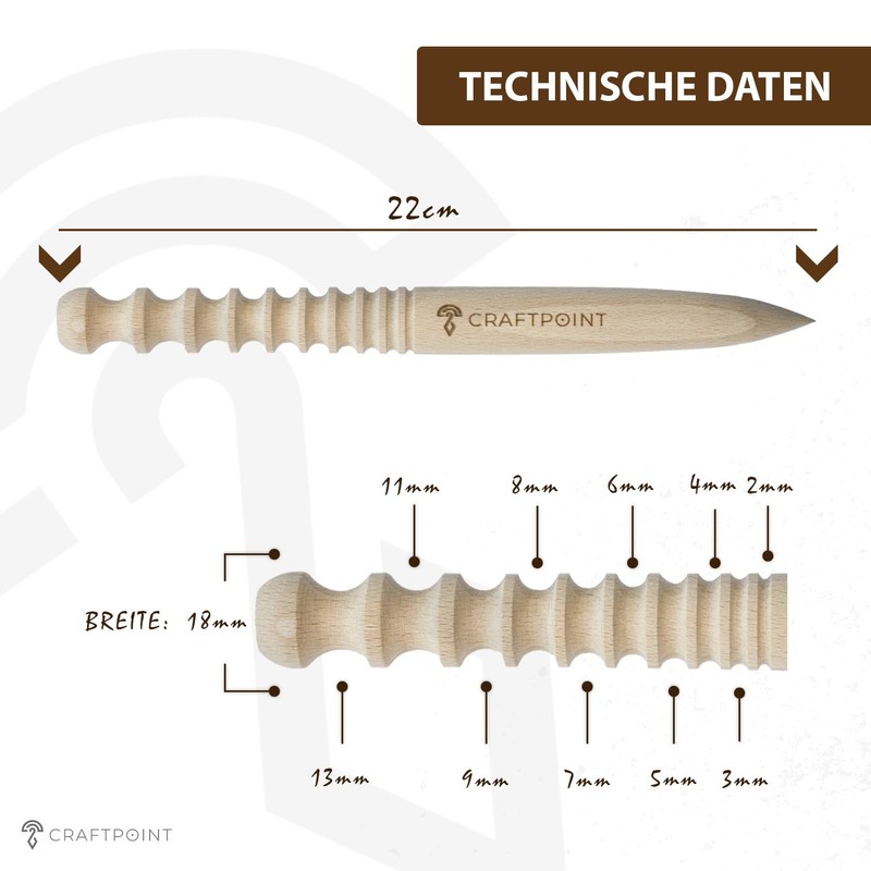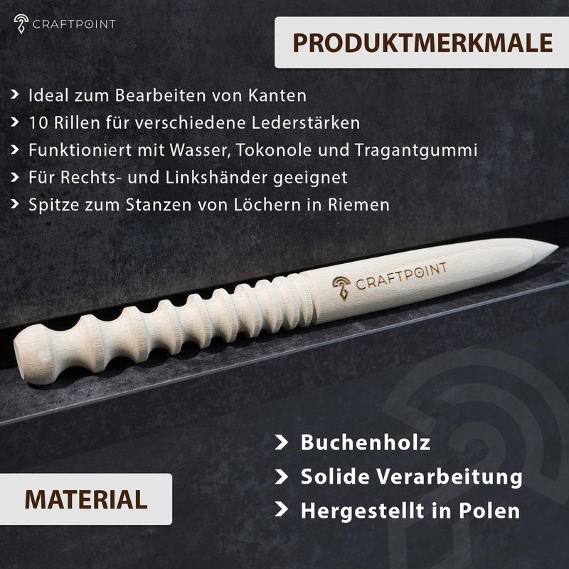 CRAFTPOINT Leather Edge Polisher, 22 cm with 10 Grooves, Beech Wood Slicker, Leather Tool for Edge Processing