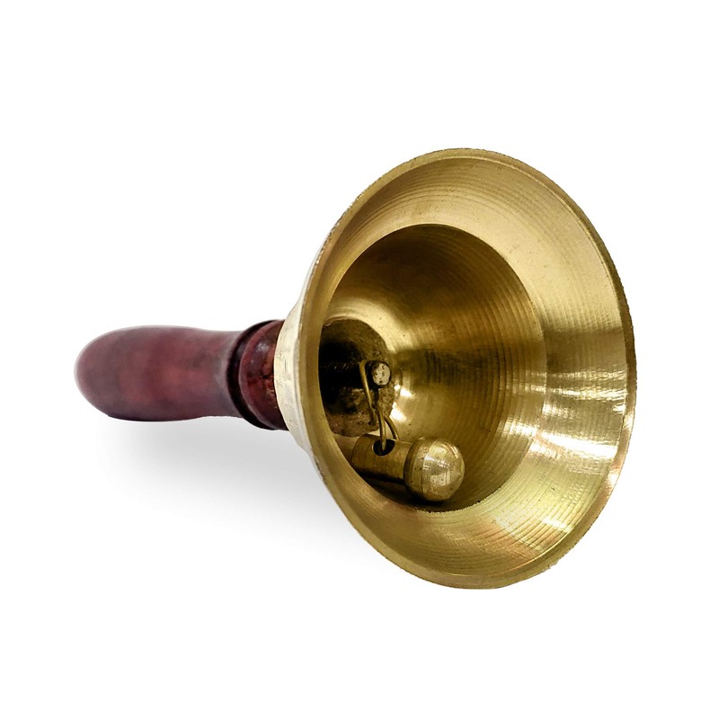 CRAFTSMAN 14 cm Hindu Pooja Puja Brass Bell With Wooden Handle Ghanti for Mandir Jingle Bell for Poojan Christmas