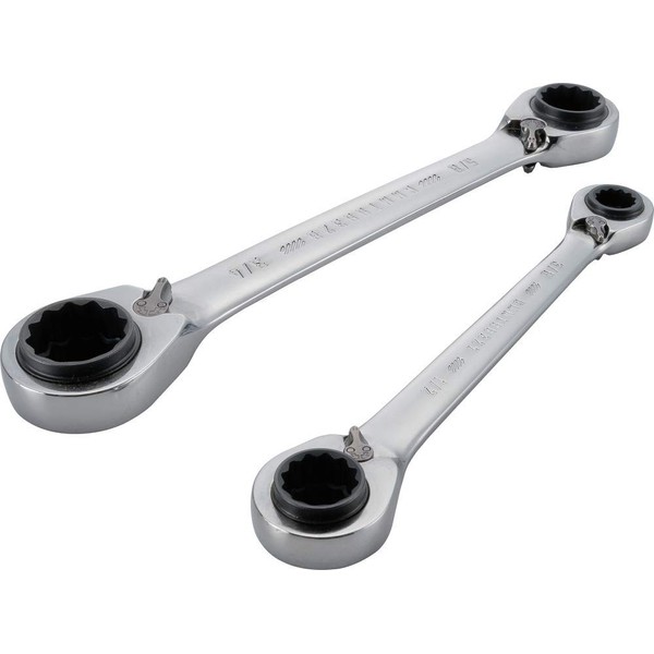 The 2pc SAE Ratcheting box wrench set offers a number of applications from the standard bolt turning to working on specific automotive repairs.