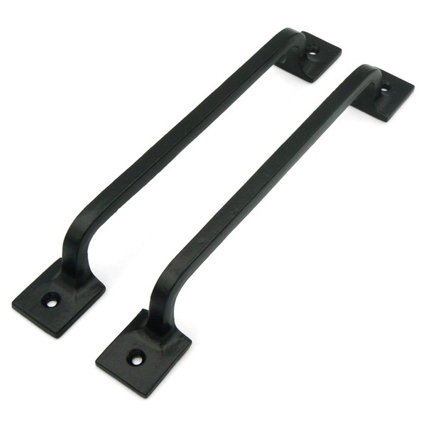 CRAFTSMAN ROAD Black Cast Iron Pull Handles 9 inch (Squared Base, Set of 2) - Cabinet Door Handles, Gate Handle Pull, Barn Door Hardware, Grab Handles