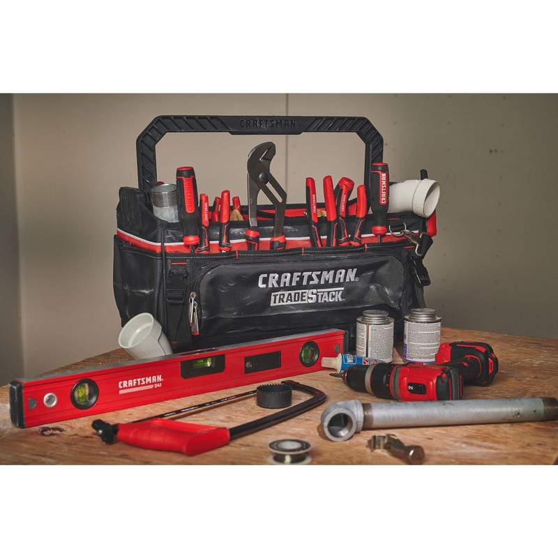 CRAFTSMAN TRADESTACK System Tool Bag, Heavy Duty Open Mouth Tool Tote, Waterproof Hard Bottom, Folding Handle (CMST21451)