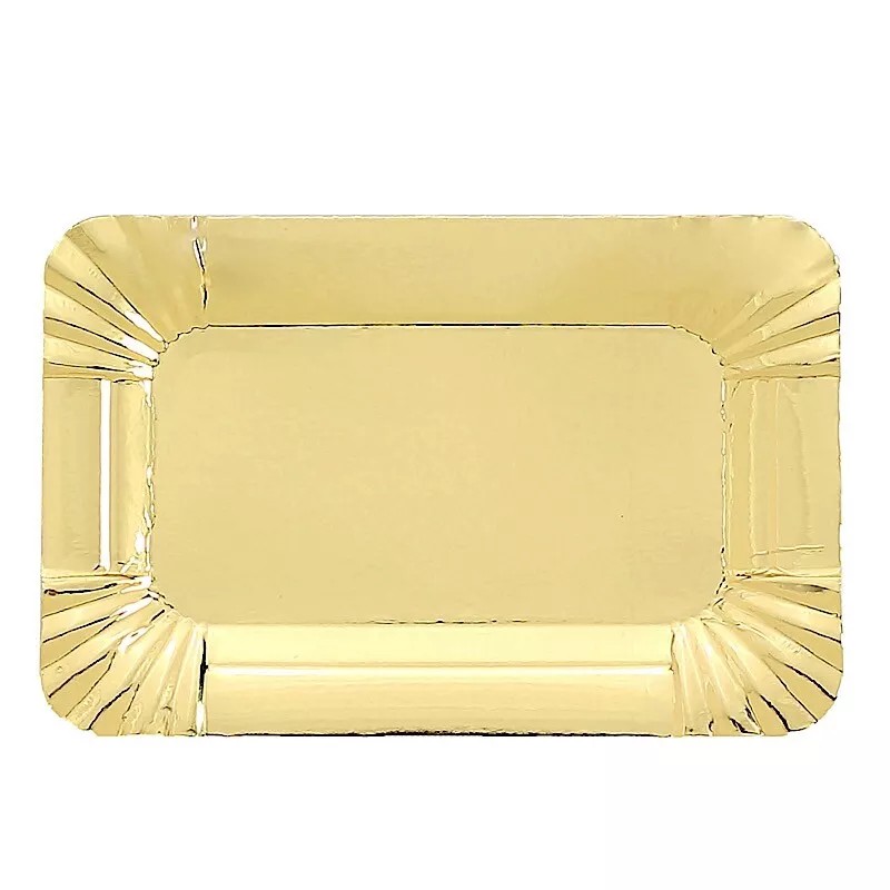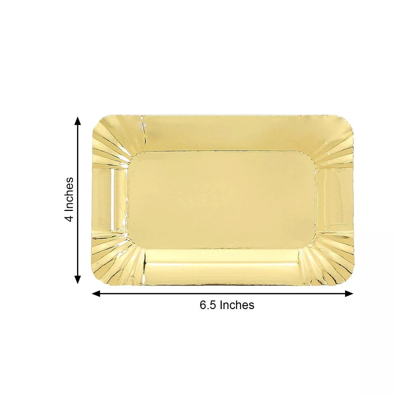 CraftsnFavors 10 GOLD 6" Mini Rectangle PAPER SERVING TRAY Scalloped Design Party Supplies
