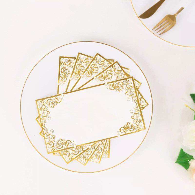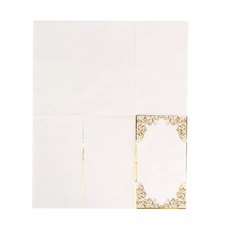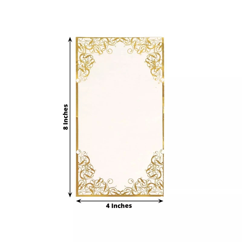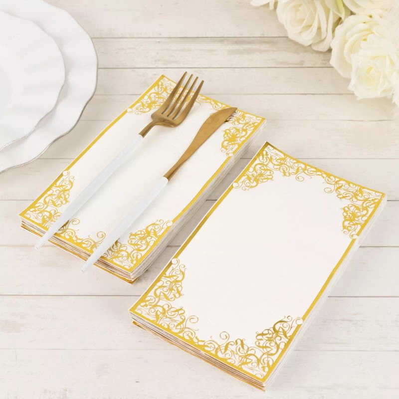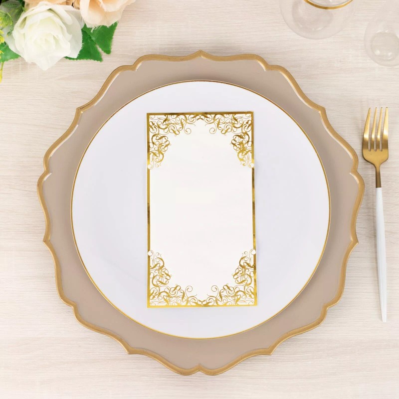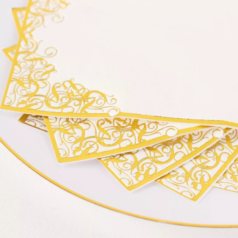 CraftsnFavors 50 WHITE Soft Dinner Paper Napkins with Gold Foil Lace Design Party Centerpieces