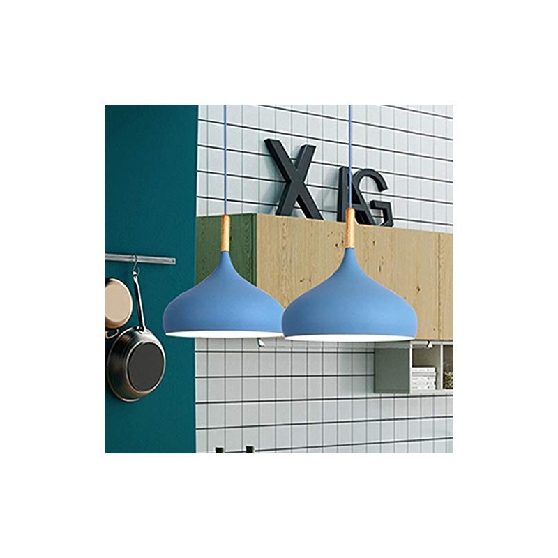 CraftThink Nordic Modern Ceiling Light Fixture, Macaron Pendant Light Teardrop Drop Simple Light Hanging Lighting Fixtures Chandelier for Restaurant bar Coffee Dining Room (Color-Blue)-12 inch Width
