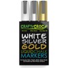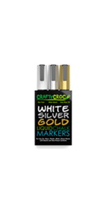 Crafty Croc Metallic Chalk Markers, Gold Silver White - 3 Pack, Medium Tip 6mm, Wet Erase for Accent Details