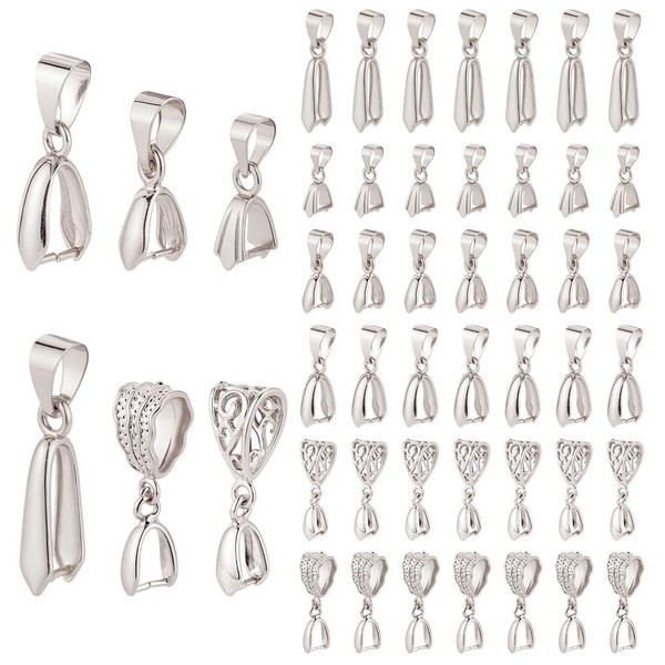 CRAFTYMELODY 48Pcs Pinch Bail Clip Clasp 6 Style Brass Snap on Bail Platinum Bead Pendant Connector Dangle Charm Jewelry Finding for Jewelry Making Accessory Supplies Necklace Bracelets DIY Craft