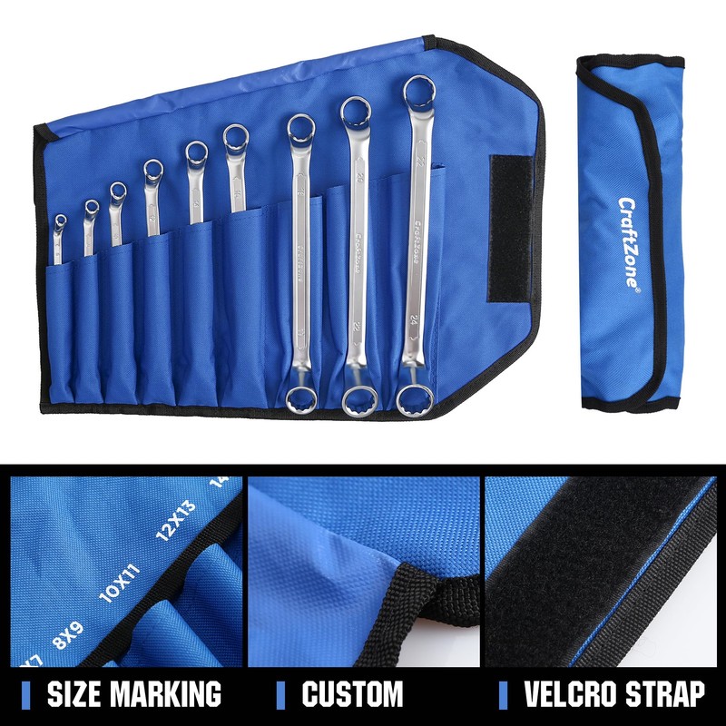 - Convenient Roll-Up Storage: Ratcheting wrenches comes with a roll-up storage bag designed specifically for ratcheting wrenches set, making it easy to organize long wrench set. The size of ratchet wrench is clearly marked on the bag, and the custom lid secures the tools to prevent sliding. Rolled neatly, it stores conveniently in car trunks or mechanic toolkits—keeping your set tidy