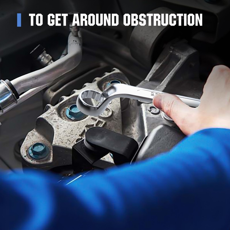 - Efficient ratchet mechanism for the offset extension wrench: The smooth ratchet design of the spanner wrench enables quick 5° swing operation, ideal for tight spaces. Single-handed tightening/loosening with the ratchet wrench set effectively reduces hand fatigue