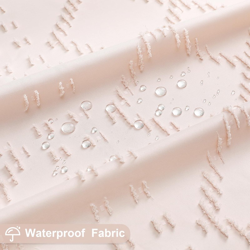 - Warm Tips: The modern boho cloth shower curtain is to some extent waterproof. Only a little bit of water will seep through, and most of the water will form droplets on the surface. If you're looking for higher waterproof performance, it's recommended to use it together with a waterproof plastic shower curtain liner.