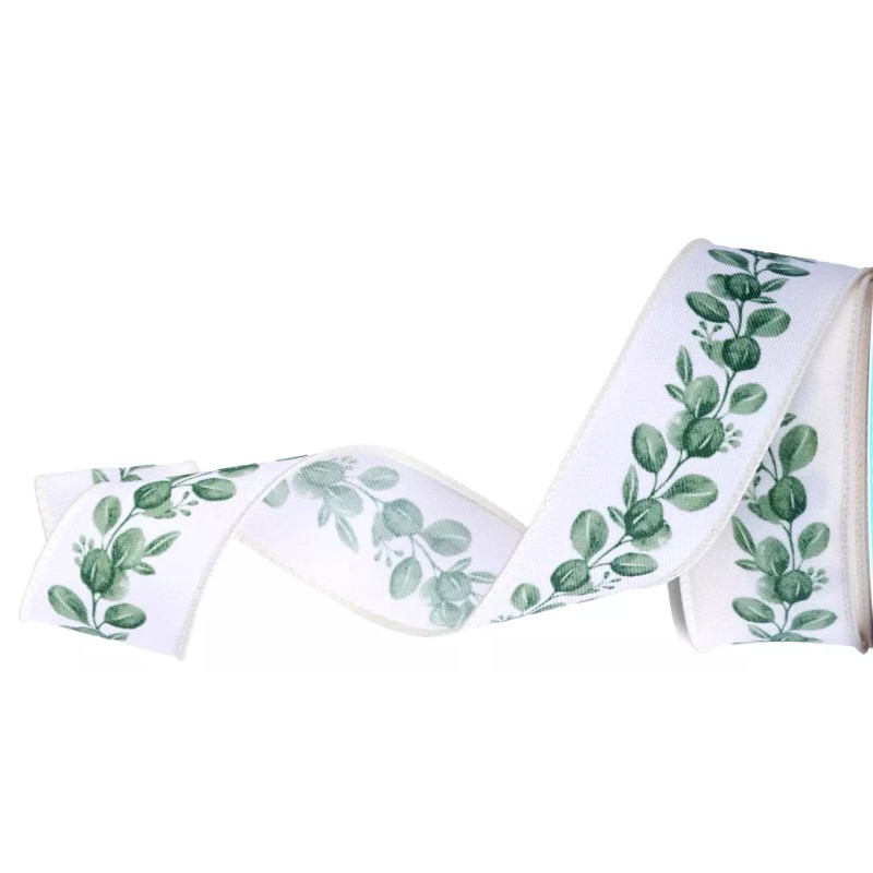 Craig Bachman Christmas Eucalyptus 1.5" by 2 yd Winter Ivory Wired Ribbon Subtle Green Winter