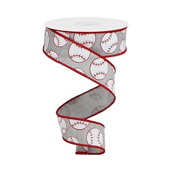 Craig Bachman Sports Glitter Wired Ribbon - 10 Yards (Baseball, Light Grey, 1.5")