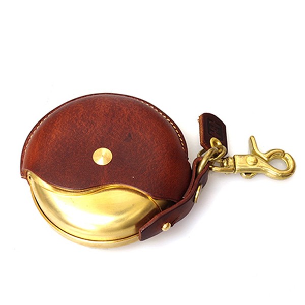 Cramp Portable Ashtray, Butt Holder, Leather, Brass, Stylish, Men's Key Holder, Leather Multi Case, Present, Clamp, Brown