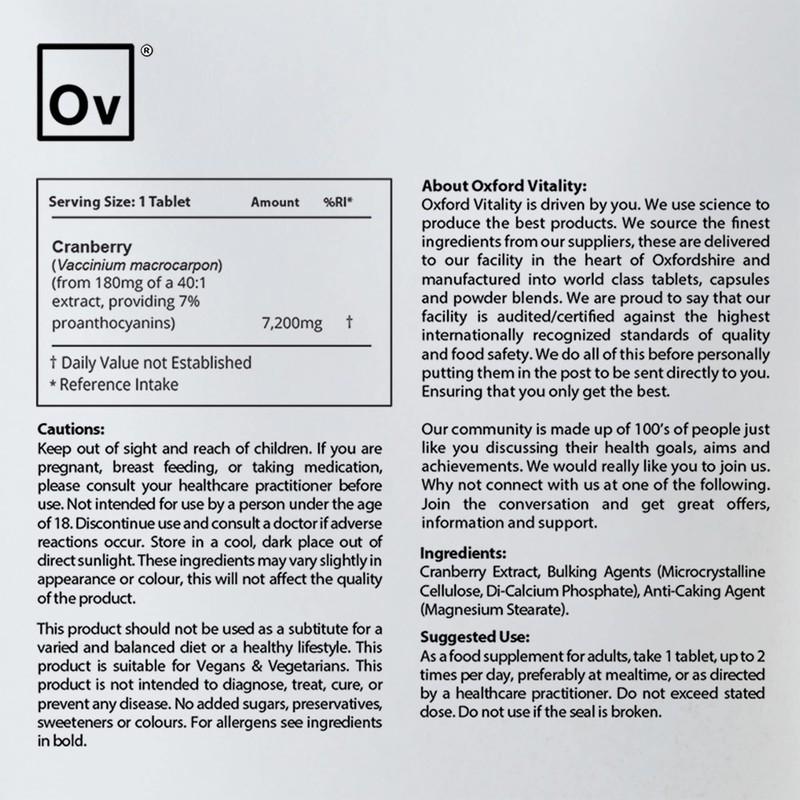 Cranberry Extract 7,200mg Tablets | High Strength Tablets for Bladder Health | Oxford Vitality