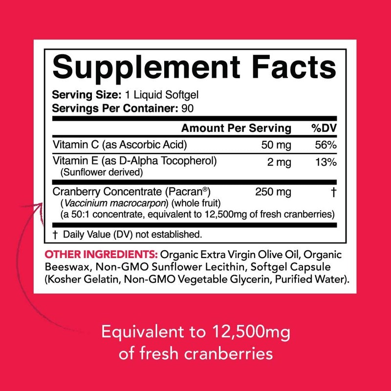 Cranberry Whole Fruit Concentrate (Triple Strength) equivalent to 12500mg of Fresh Cranberries ~ Made with clinically Proven Pacran® ~ Non-Gmo & Gluten Free (90 Softgels)