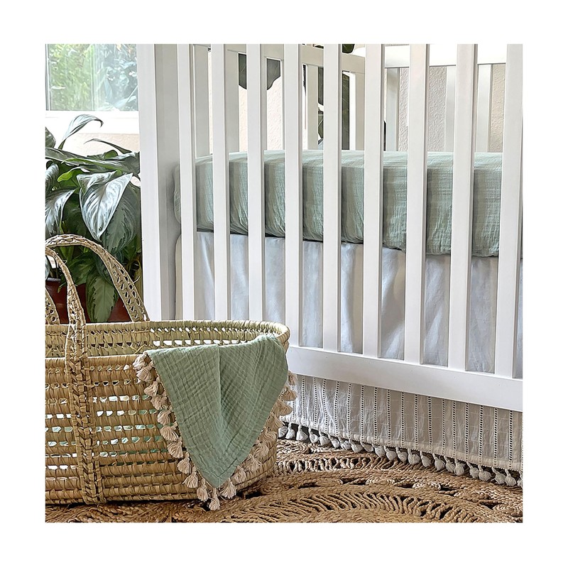 Crane Baby Crane Baby 6 Ply Muslin Blanket Cotton Blanket Fringe Tassel Gauze Blanket Evergreen