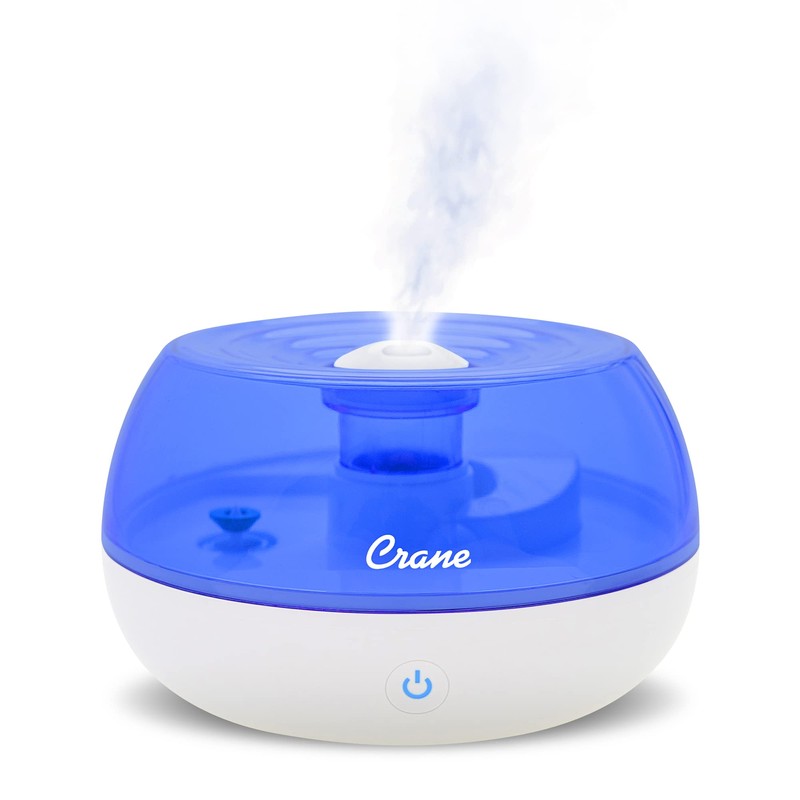 Crane Personal Ultrasonic Cool Mist Humidifier, for Home Bedroom Hotels Travel and Office, 0.2 Gallon, Filter Free, Blue and White