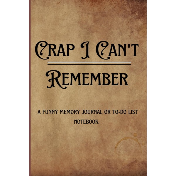 "Crap I Can't Remember": a funny memory journal or to-do list notebook.