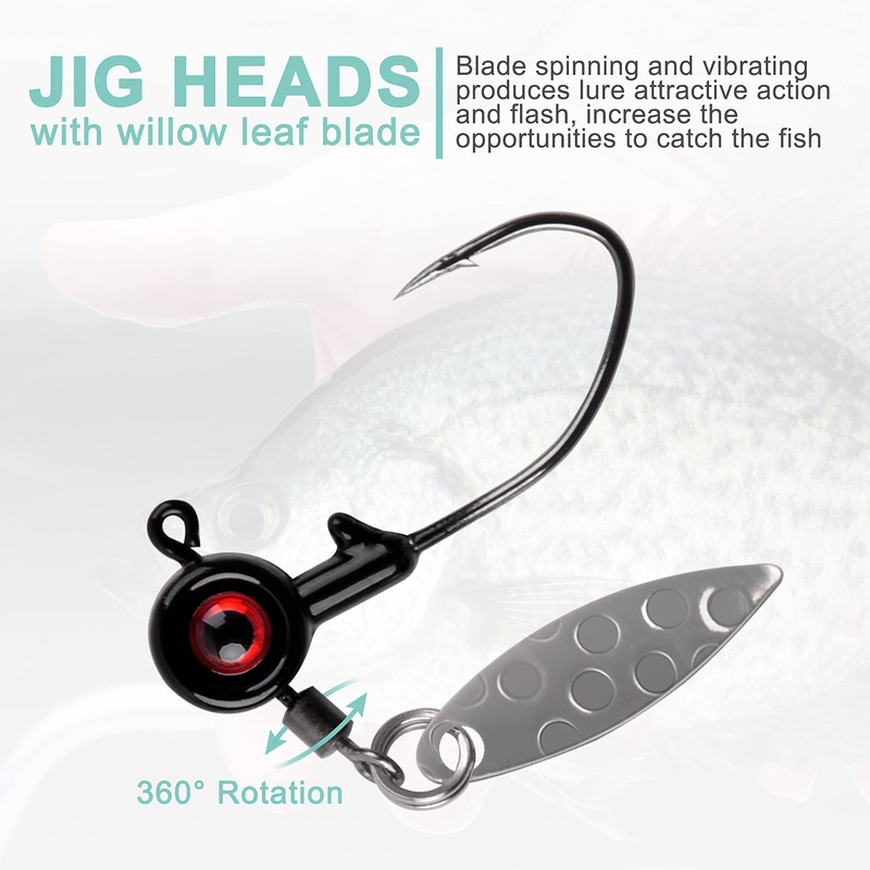 - 🐟 EASY TO USE: You can rig the jig spinner with soft plastic or live bait. Both beginners and experienced anglers can use it to catch different fish. The jig head hooks with spinner blade can be a good present for you to share with your families or fishing friends!