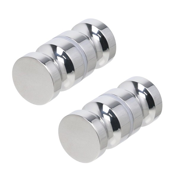 Crapyt 2 Pcs Bathroom I-Form Shower Glass Door Handle, Single Hole Solid Cylindrical 304 Stainless Steel Back-to-Back Handle, Shower Room Knobs Replacement Hardware Accessories(Polished Silver)