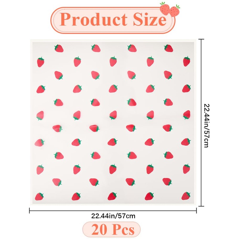 CRASPIRE 20 Sheets Flower Wrapping Paper 22.4 x 22.4In Wedding Bouquet Packaging Waterproof Wrap Paper Plastic Bouquets Wrapper DIY Crafts Strawberry Patterns Birthday Florist Gifts Decor White