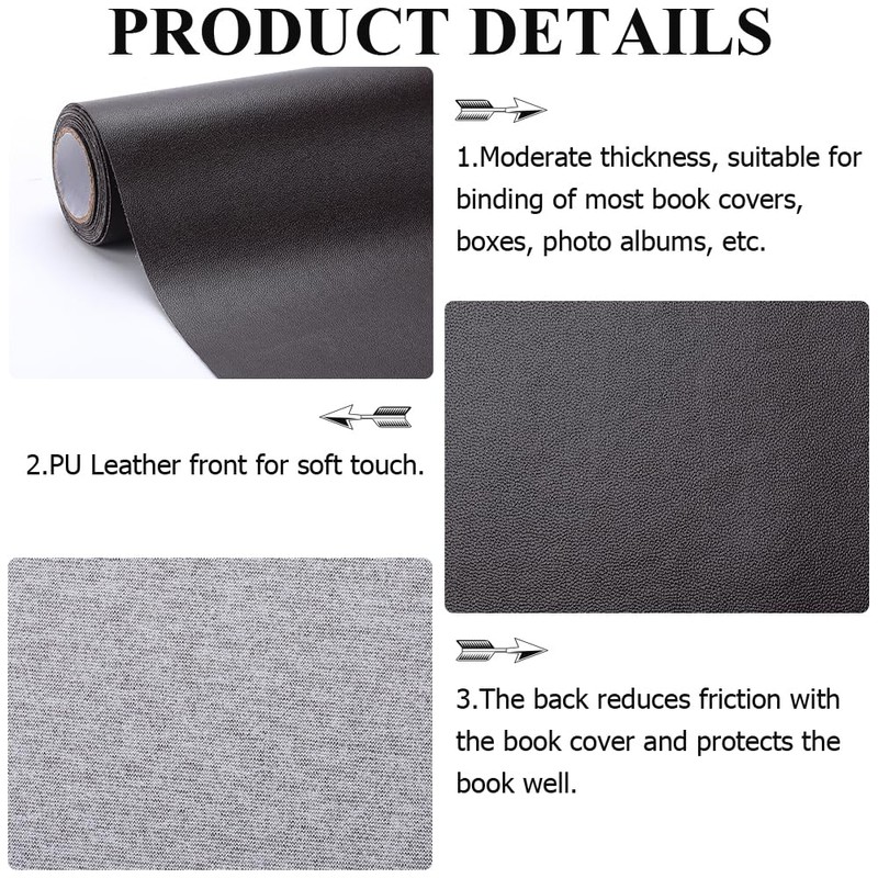 - PU Leather Book Cloth: The book cloth made of artificial leather, faux leather fabric on one side, non-woven on the other side, with smooth surface and vintage texture sense, not easy to break. (No self-adhesive)